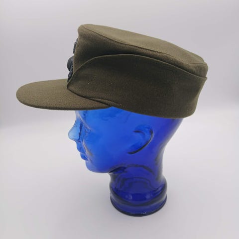Eldre norsk offiserslue i olivengrønt stoff, størrelse 57.