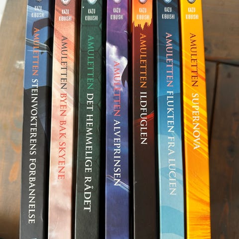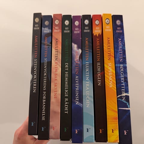 Samling med bøker fra serien «Amuletten». Bok 1 - 8 selges samlet. Bok 1 og 2 er pocket, resten er innbundet.