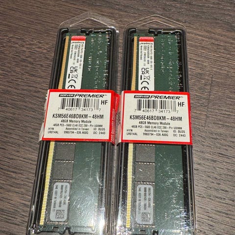 Selger 2 stk Kingston Server Premier DDR5-5600 ECC UDIMM 32GB (totalt 64GB).
