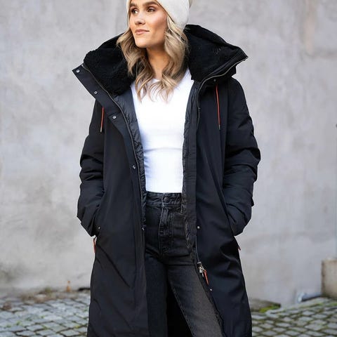 Twentyfour ytterjakke for dame i størrelse M. Jakken er svart og har knytebelte i livet for justerbar passform. Den har hette, lange ermer og lukkes foran. Praktiske lommer i siden og justering på ermeavslutningene. Egnet som yttertøy til hverdagsbruk og tur i kjøligere vær.
