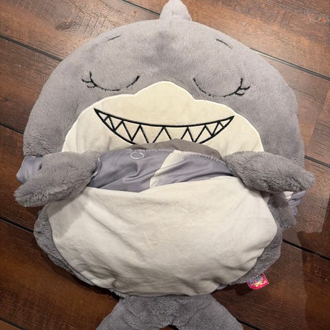 Jollyroom BabyMat leketeppe for baby og småbarn. Teppe formet som en hai i grå og lyseblå farger, med myk polstring som gir et behagelig underlag til lek og krabbing. Passer som aktivitets- og leketeppe på gulv på barnerom eller i stue. Ytterstoff og fyll er i tekstilmateriale, med underside i lys blå farge. Kan brukes fra spedbarnsalder under tilsyn av voksen.