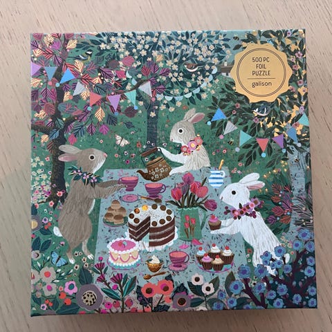 Puslespill med 500 brikker fra Galison. Det er et hull i esken, men selve puslespillet er pent brukt.