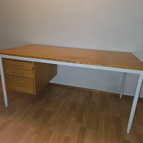 Skrivebordet har litt slitasje (se bilder). Overflaten kan med fordel friskes opp med lett puss og olje.