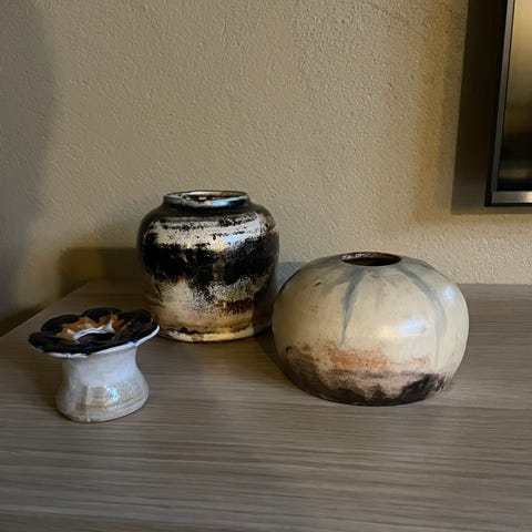 Vasene er kjøpt fra HMHome og er laget i keramikk med matt overflate og er i en lys beige farge.