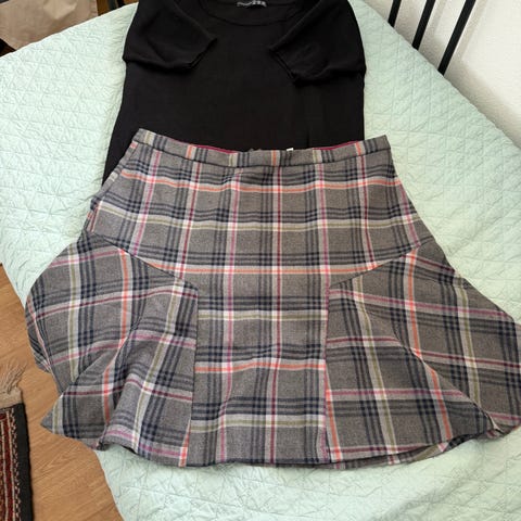 Ukjent merke skjørt grå ull rutemønster dame str. 38