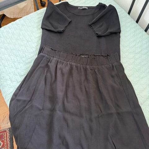 Skjørt i grå ull med rutemønster for dame i størrelse 38. Skjørtet har rett fasong og går omtrent til over kneet, avhengig av høyde. Materialet er ull, som gir et mykt og varmt plagg. Passer til bruk med både genser og bluse, og kan kombineres med strømpebukse eller tights.
