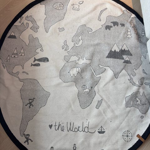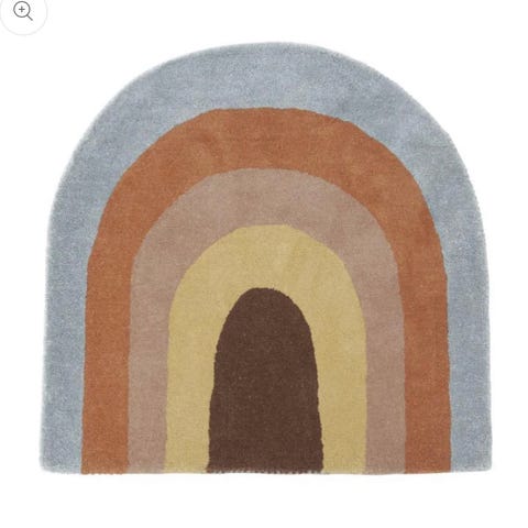 -Follow the Rainbow-teppet er laget av 80% ull og 20% bomull og måler hele 124 cm x 100cm.