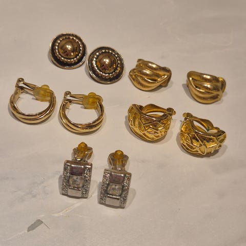 Tre par vintage øreklips med perler i Chanel stil og med et par med Swarovski stener.