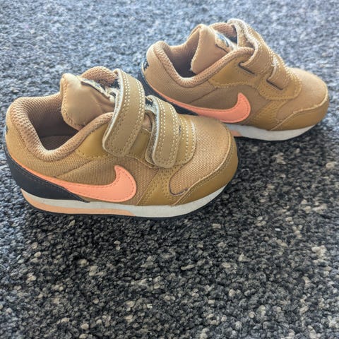 Nike joggesko for barn i størrelse 22. Unisex-modell i svart farge. Skoene har borrelås og snøring for enkel justering og god passform. Egnet til hverdagsbruk og lek for små barn.