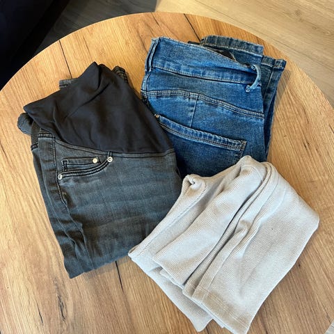 Selger også matchende mørkebrun tights fra HM Before and after. Passer både mens man er gravid og tiden etter 🤰
