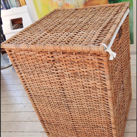 Flettet skittentøyskurv som er en rektangulær kurv med praktisk lokk av høy kvalitet. Det naturlige materialet i vaskekurven gir et rustikt og vakkert uttrykk. Passer inn både på bad, vaskerom og soverom. Tar liten plass så er en god og praktisk løsning, da den enkelt kan settes inntil enhver vegg uten å ta opp for mye plass. Nypris var 1200kr.