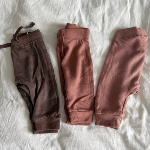 Name it babybukser i brun farge, str. 68, unisex. Buksene har myk linning i livet og ved anklene for god passform. Flere varianter med snøring eller bred ribbekant i livet. Egnet som hverdagsbukser til baby i str. 68.