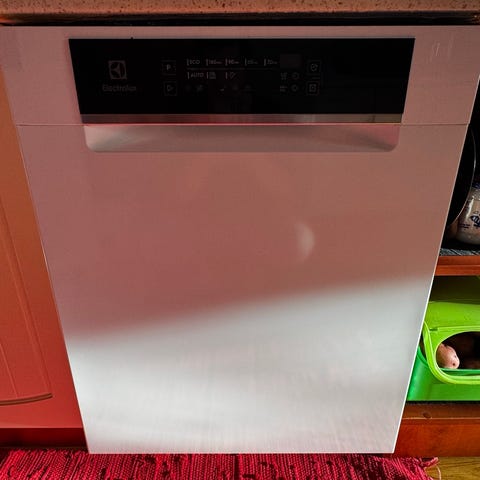 Fungerte helt fint (og veldig stillegående) til det begynte å blinke to lamper i displayet. Dette betyr at den ikke tar inn vann, og dette skyldes mest sannsynlig defekt AquaStop-enhet (en svakhet på disse). Den er din mot henting og utbæring fra 2. etg!