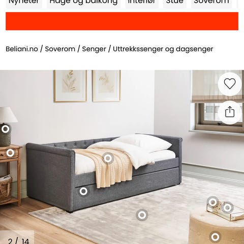 Flekke dagseng, to madrasser kan følge med, om ønskelig.