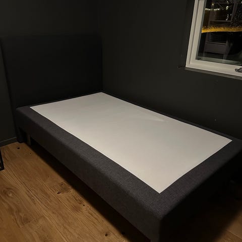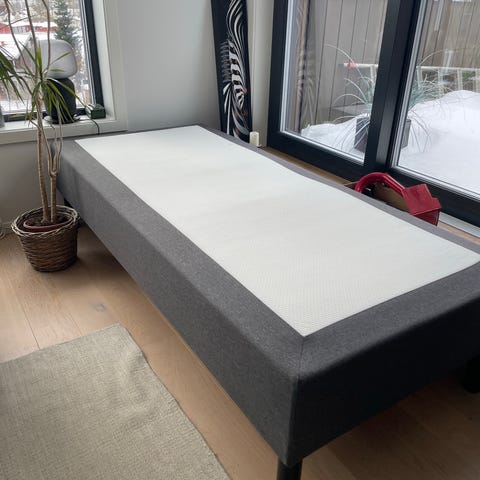 Godt brukt rammemadrass uten overmadrass gis bort. Kantene er fine så vidt jeg kan se, så mye bruk igjen med en ny overmadrass.