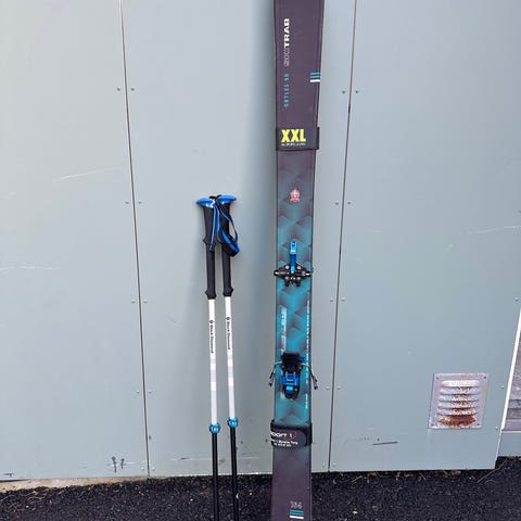Salomon Stella alpinski i lengde 158 cm. De er utstyrt med tech-bindinger fra Dynafit. Passer til frikjøring og toppturbruk. Settet på bildene inkluderer også Dynafit skistøvler og staver. Feller medfølger.