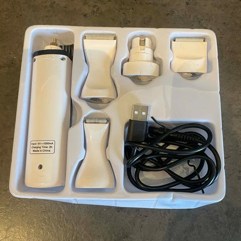 Trixie pelsklipper for hund. Trimmeren er batteridrevet og leveres i fargen hvit/gull. I esken følger det med flere justerbare kammer for ulike klippelengder, samt lader/strømkabel. Egnet til trimming og vedlikehold av pels på mindre og mellomstore hunder. Utformet for hjemmebruk med enkel betjening via skyvebryter på håndtaket.