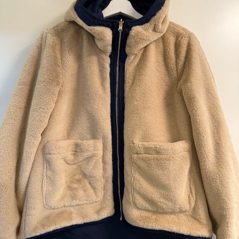 Sinsay Outerwear jakke for dame i størrelse XS. Jakken er laget i beige fleece med strukturert overflate. Den har glidelåslukking foran og to frontlommer med kontrastdetaljer. Modellen er uten hette og har rund hals. Egnet som lett ytterjakke eller mellomlag på kjøligere dager.