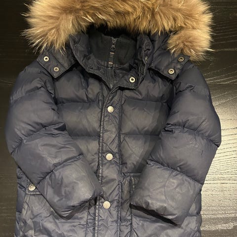 Hei selger en MONCLER jakke som er som ny størrelse 2/3 åring farge er mørk blå som originale Monclair jakke