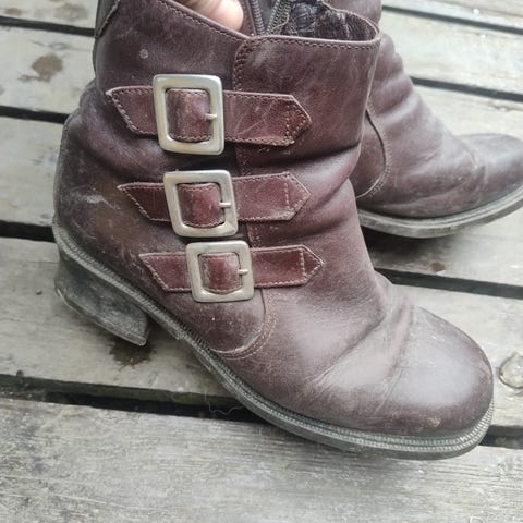Godt brukte mokka fargede snørestøvletter, selges rimelig da de trenger å pusses litt. Fortsatt mye bruk igjen. Str 40 med litt hel.