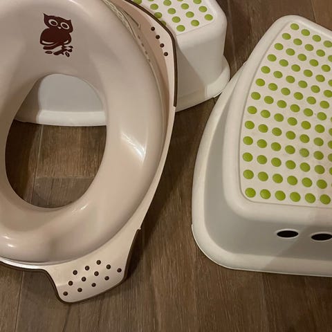 Tossig toalettsete og Försiktig barnekrakk, begge fra Ikea.