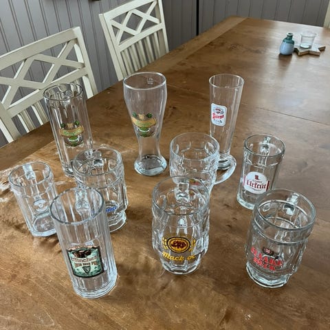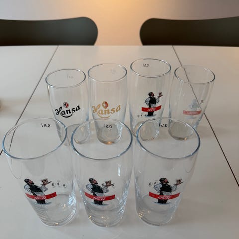 Diverse ølglass fra 0,33 til 0,6 selges samlet. Minste glasset var til vask da jeg tok bildet.
