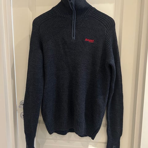 Bergans ullgenser for herre i størrelse M. Genseren er blå og laget i ull, med høy hals og glidelås øverst. Passer til hverdagsbruk og friluftsaktiviteter der man ønsker et varmt og isolerende mellomlag.