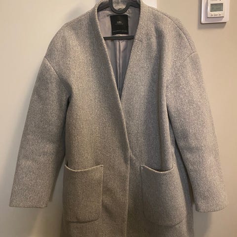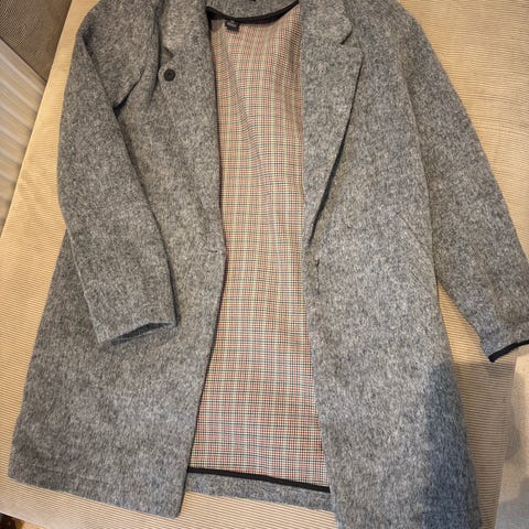 Kåpen er grå og laget i en ullblanding med ull som hovedmateriale.