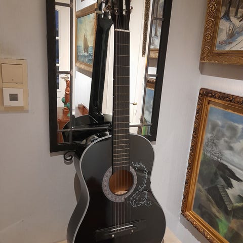 Lite brukt gitar med nye strenger men har ligget ubrukt i halv år ca. Nylong strenger så mindre vont å trene på. Fungerer helt fint men har kjøpt meg en stål gitar.
