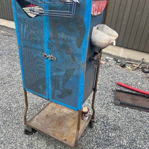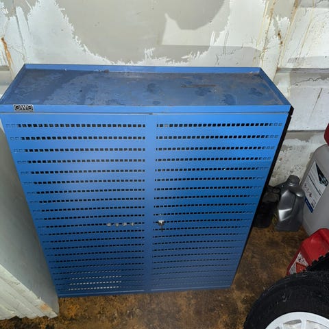 Verktøyskap metall blå med perforerte dører