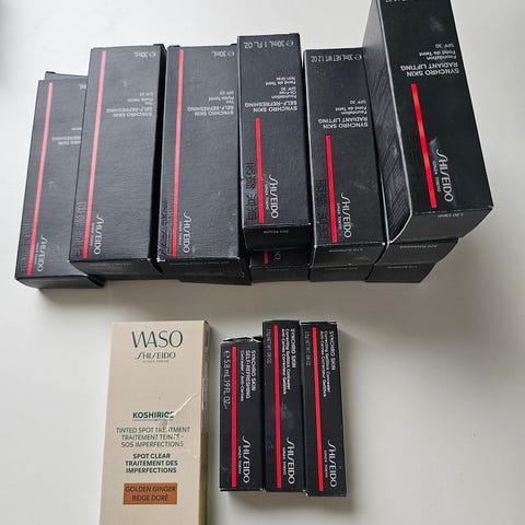 Selger pakke med Shiseido øyenskygger og brynprodukter fra nedlagt butikk.