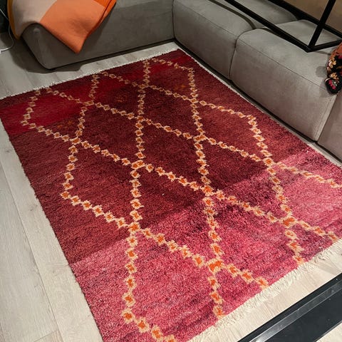 Kvadratisk beige/brunt teppe i 80 % ull og 20 % bomull fra Rugvista i størrelse 250x250 cm. Pent brukt i røyk- og dyrefritt hjem. Må hentes. Kvittering kan medfølge.