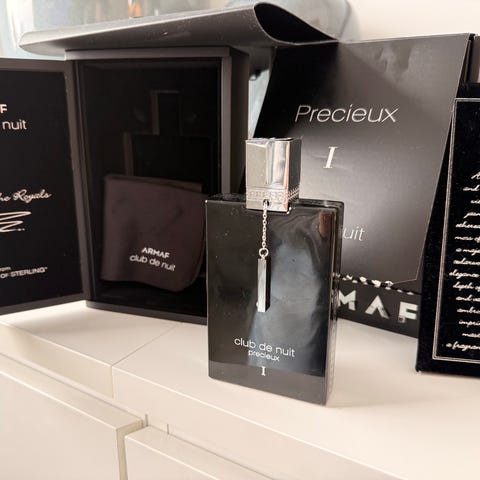 Armaf Club De Nuit precieux er en nesten 1:1 dupe av creeb aventus absolu. Passer for dem som liker markante og langvarige dufter. Flasken er 55ml, brukt cirka 2ml så fremstår nesten helt ny