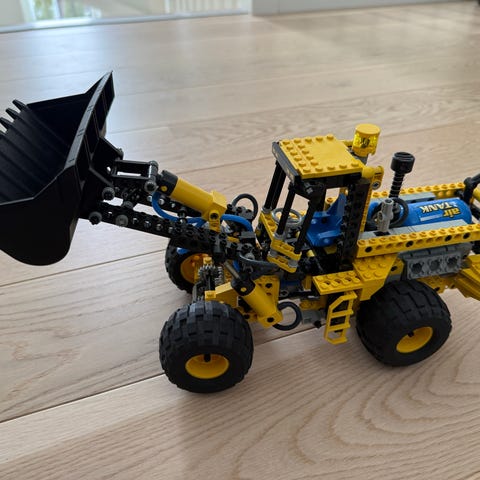 LEGO Technic hjullaster. Modellen er bygget i hovedsak i gule og svarte deler med store dekk og frontskuffe. Settet har typiske Technic-funksjoner som bevegelig skuffe og leddet styring. Egner seg for bygging og lek for dem som liker tekniske kjøretøy og anleggsmaskiner.