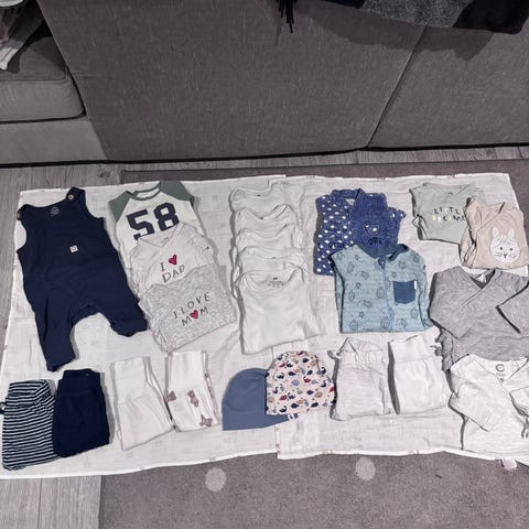 Selger en klespakke I størrelse 56 pent brukt av 2 barn.