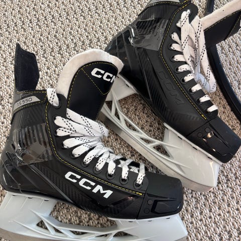 CCM ishockeyskøyter i størrelse 42. Klassiske svarte skøyter med hvite lisser og polstret innside for økt komfort. Egnet til ishockeybruk på isbaner og lignende aktiviteter. Skøytene har stålklinger og tradisjonell snøring for justering av passform.