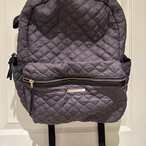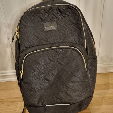 DAY ET ryggsekk i quiltet stoff for dame. Sekken er svart med gullfargede glidelåser og har et hovedrom med egen lomme til pc, frontlomme med glidelås og åpne sidelommer. Justerbare skulderstropper og bærehank øverst. Egnet til hverdagsbruk, skole, jobb eller fritid.