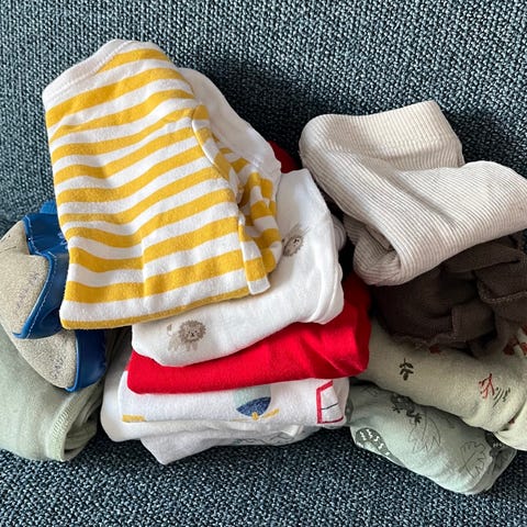 Selger en praktisk og pent brukt klespakke i størrelse 62/68. Klærne er behagelige, fine i bruk og passer like godt til hverdags som til litt penere anledninger.