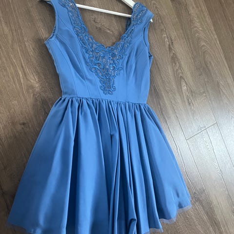 Bak har den noen tråddragninger. Du kan se dem hvis du ser nøye etter, men når kjolen er på, er det ikke synlig i det hele tatt.