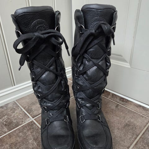 Timberland støvler i størrelse 38. Høye snørestøvler i brun farge med kraftig såle og hemper til skolissene foran. Skinn støvler med myk innside for økt komfort rundt leggen. Passer til bruk i kjøligere vær og til hverdagsbruk der det er behov for stabile og dekkende sko.
