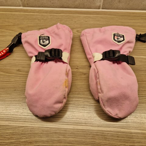 Hestravotter modell c-zone str 5. Vottene er i rosa polyester med primaloft-for. Supervarme! Pent brukt men noen bruksmerker/små rifter i kantene noen steder. Se bilder. Vottene holder utrolig godt på varmen og har forsterkede håndflater. Justerbar lukking for bedre passform.