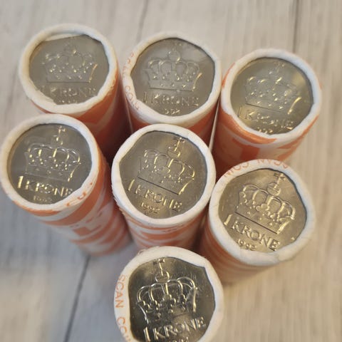 5 stk 10 øre rull - 1981, 1982, 1985, 2 blindrull