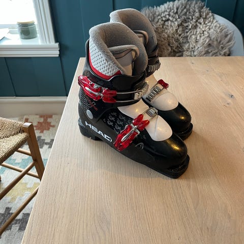 Alpinski med tilhørende alpinstøvler. Skiene har integrerte bindinger og er i hvit farge med rosa detaljer. Alpinstøvlene har justerbare spenner og er i svart, hvitt og rødt. De er i str36/37.Passer til bruk i alpinbakke for kjøring i preparerte løyper. Egner seg som komplett sett for alpint med ski, bindinger og støvler.
