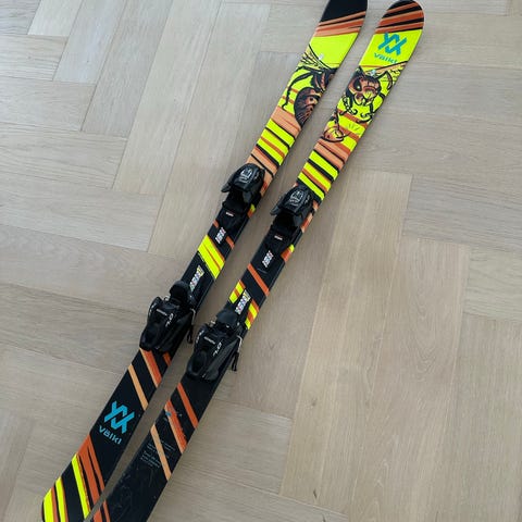Skiene har et flerfarget mønster på oversiden og sort såle.