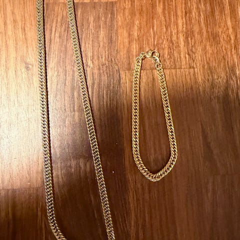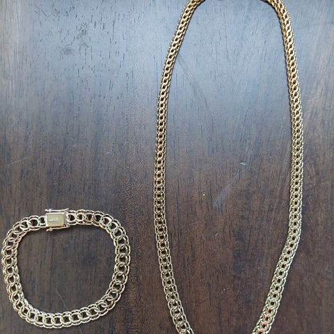 Gull 585 smykkesett med armbånd og kjede 14K
