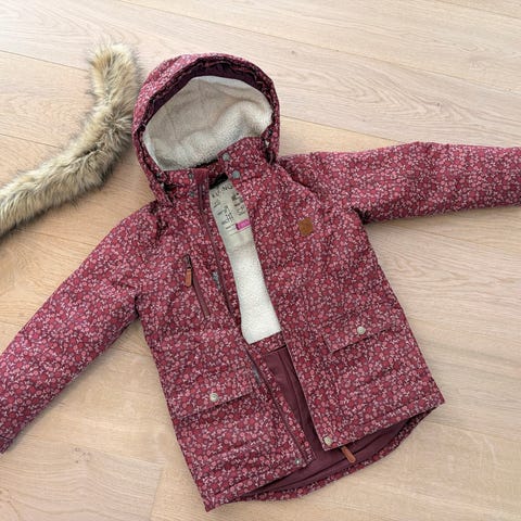 Myk og deilig med god pels på hetta. Både pelsen og hetta kan tas av om ønskelig.
