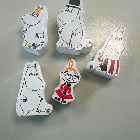 Mummi stableklosser leketårn i blå plast. Består av flere nummererte kopper som kan stables til et tårn eller settes inni hverandre. Hver kopp har illustrasjoner med Mummi-figurer i vinduer, og et rødt tak som avslutter tårnet. Leketøyet kan brukes til enkel tall- og størrelseslæring, samt til rollelek med Mummi-tema.