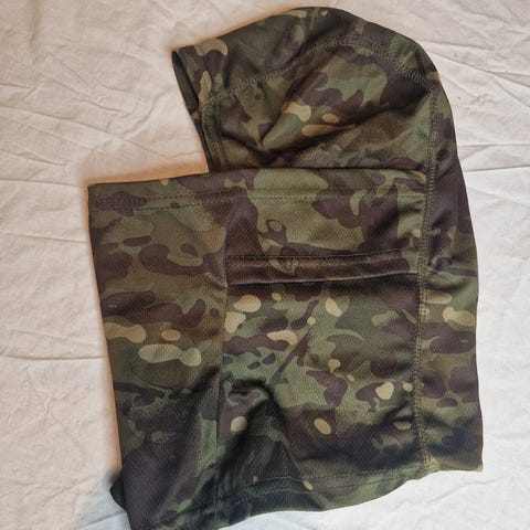 Pent brukt buff i woodland camo. Pustende og behagelig på.