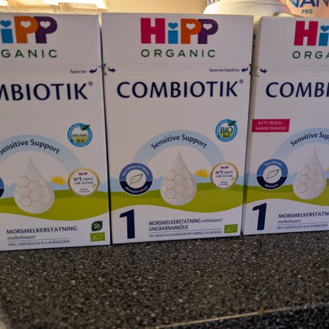 Hipp Combiotik 1 ferdigblandet morsmelkerstatning. Selges da det ikke blir brukt. Alle flaskene har samme utløpsdato som er 30.06.2026. Det er tilsammen 36 flasker