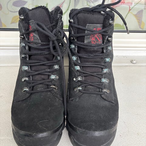 Helly Hansen vinterstøvler i størrelse 46. Støvlene er i svart farge med snøring foran og grovmønstret yttersåle. Overdelen er i vanntett skinn, med polstret ankelparti for økt komfort. Modellen har Helly Hansen-logo bak på hælen og på pløsen. Egnet som varme og robuste sko til bruk i kaldere vær og på glatt underlag.